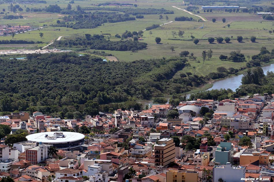 O prédio redondo é a rodoviária e o rio onde foi achada a imagem de Nossa Senhora