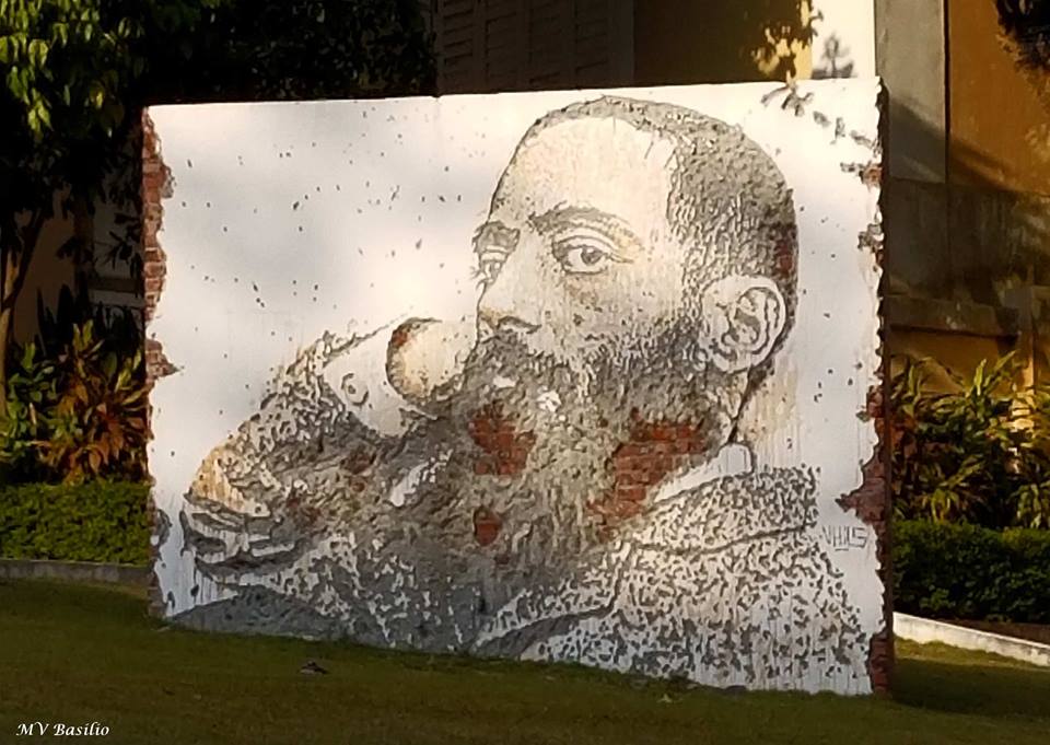 Mural com a imagem de Camilo Pessanha, no jardim do Consulado de Portugal em Macau, da autoria do artista Alexandre Farto, conhecido como Whils. Foto MV Basílio