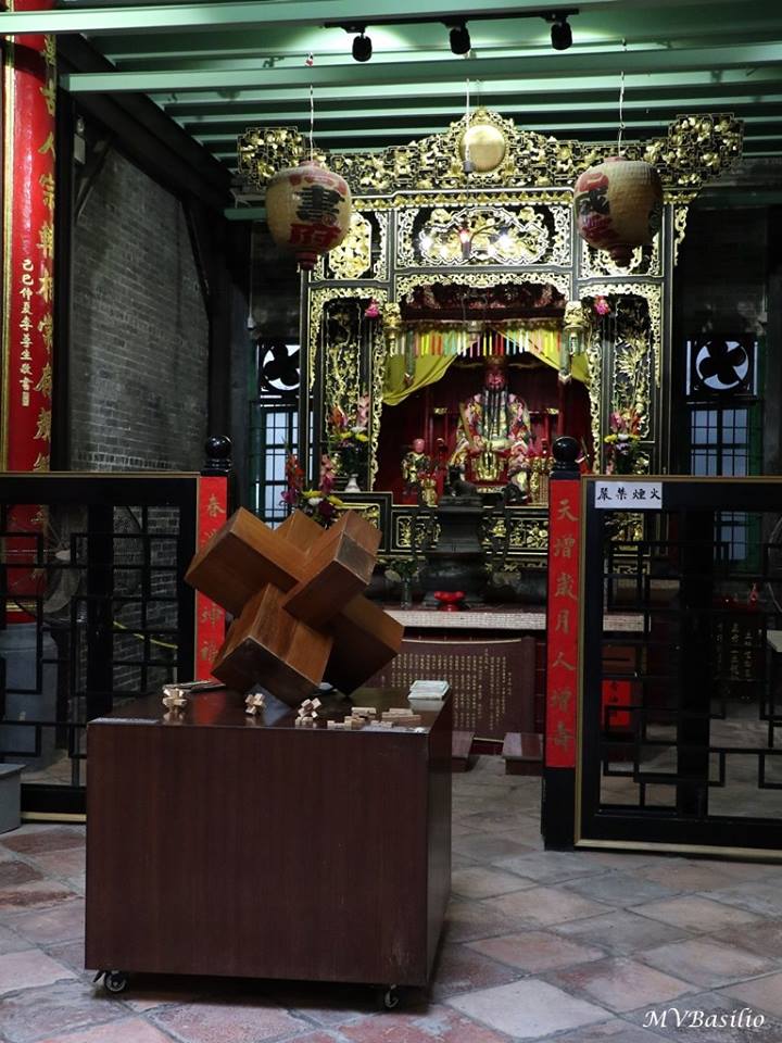 Interior da sede da Associação dos Carpinteiros, em cujo altar está a estátua do lendário mestre artesão, Lou Pán ( 魯班). Foto MV Basílio