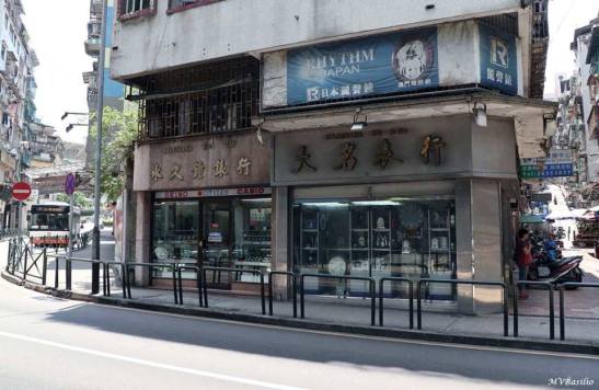 Dos estabelecimentos acima referidos, quase todos já cessaram as suas actividades, porquanto, além do centenário restaurante A Vencedora, estabelecido em 1918, pela família Lam, ainda restam a loja de artigos eléctricos Un Kei Hong, Foto Maxim, as relojoarias Tai Meng e Veng Cau. Os prédios antigos, onde funcionavam as lojas acima referidas, praticamente todos foram já demolidos, alguns dos quais, depois de reconstruídos, adoptaram o nome do estabelecimento como designação do novo prédio, tais como o edifício Vai I (唯 二 樓), onde estava a referida loja de sopa de fitas, e o edifício Cheong Chan (祥 棧 樓), um estabelecimento de carne assada. A loja de Sopa de Fitas Vai I era muito frequentada por apreciadores de “chau min”, pois era de facto um “chau min” sem igual, que muita gente ainda recorda com saudades. Depois de um bom “chau min”, era quase inevitável passar pela Mercearia On On, para uma bebida bem fresquinha, por vezes acompanhada da deliciosa bebinca de côco ou de chocolate, ou então de outras guloseimas. Para os residentes portugueses, sobretudo polícias e militares, a loja que preferentemente frequentavam era a Mercearia Cheong Heng (昌 興 辦 館), que vendia um pouco de tudo, sobretudo produtos portugueses, mas na realidade funcionava como uma autêntica tasca, onde passavam horas a tomar bebidas alcoólicas, a petiscar, sempre em animada cavaqueira e por vezes até em grande bebedeira. Para um boa e económica refeição à portuguesa, o restaurante A Vencedora, mais conhecido por Kuan Kei (18), era a primeira opção. O Cinema Império (inicialmente designado por Broadway) movimentava muitos apreciadores de filmes ocidentais, e até crianças, pois havia, aos fins de semana, uma sessão de desenhos animados (os “cartoons“, como lhes chamavam), que lhes era especialmente dedicada. Era, sem dúvida, em toda a extensão da rua, a zona mais comercial, com uma diversidade de negócios, não se limitando a produtos alimentares, pois havia uma tipografia – a Tipografia Progresso, pertencente a uma família portuguesa (19), e até uma carpintaria (20), que na própria loja fazia caixão de modelo ocidental, à medida do defunto!