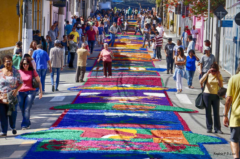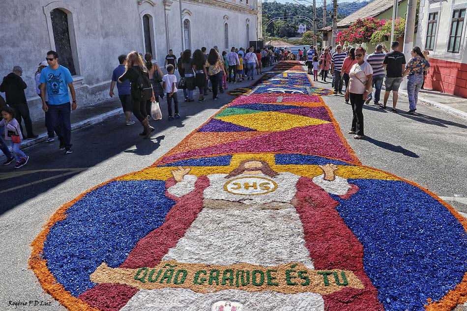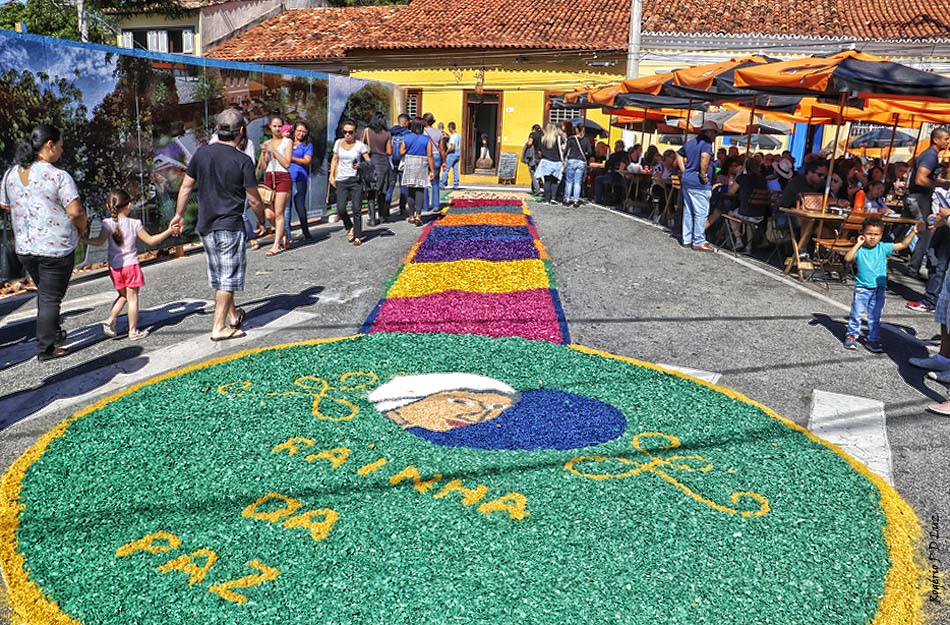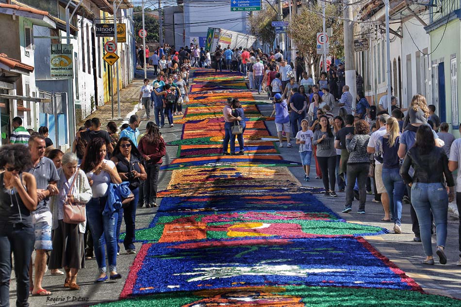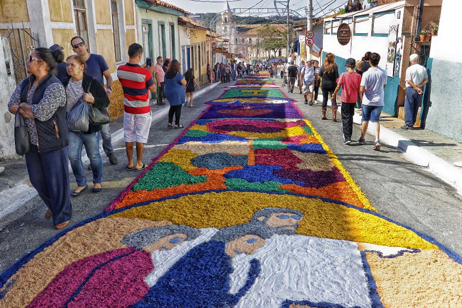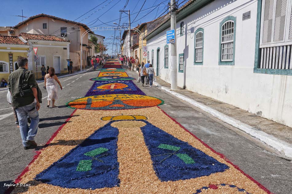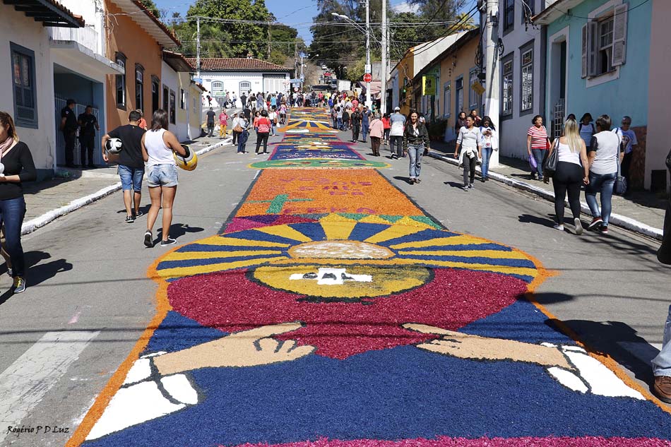 Em muitas cidades portuguesas e brasileiras, é costume ornamentar as ruas por onde passa a procissão com tapetes de colorido vivo e desenhos de inspiração religiosa. Esta festividade de longa data se constitui uma tradição no Brasil, principalmente nas “cidades históricas”, que se revestem de práticas antigas e tradicionais e que são embelezadas com decorações de acordo com costumes locais.