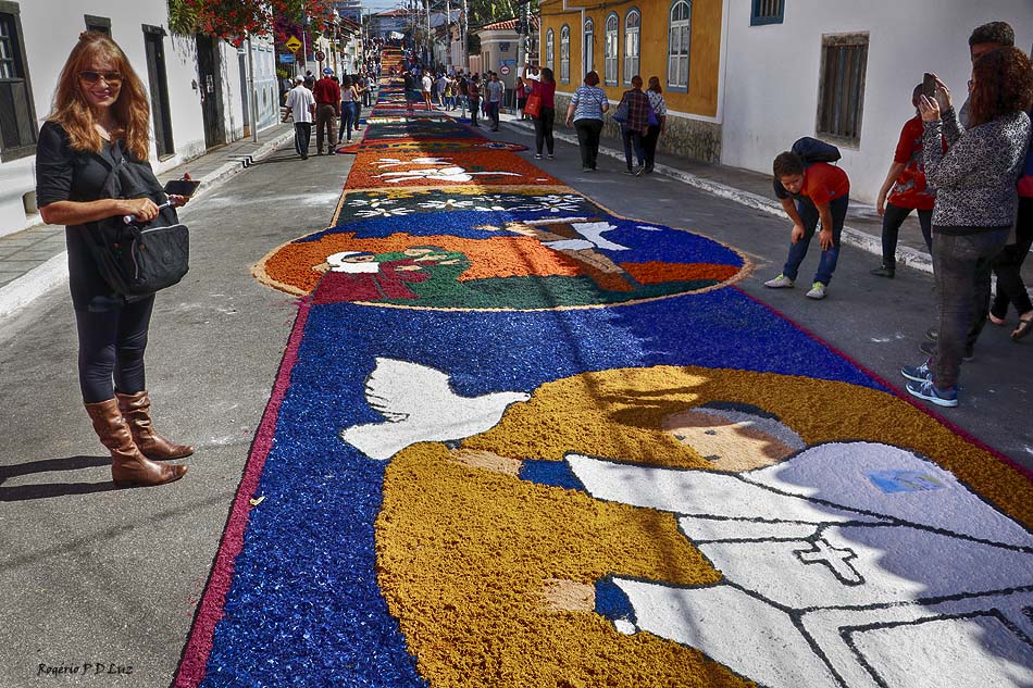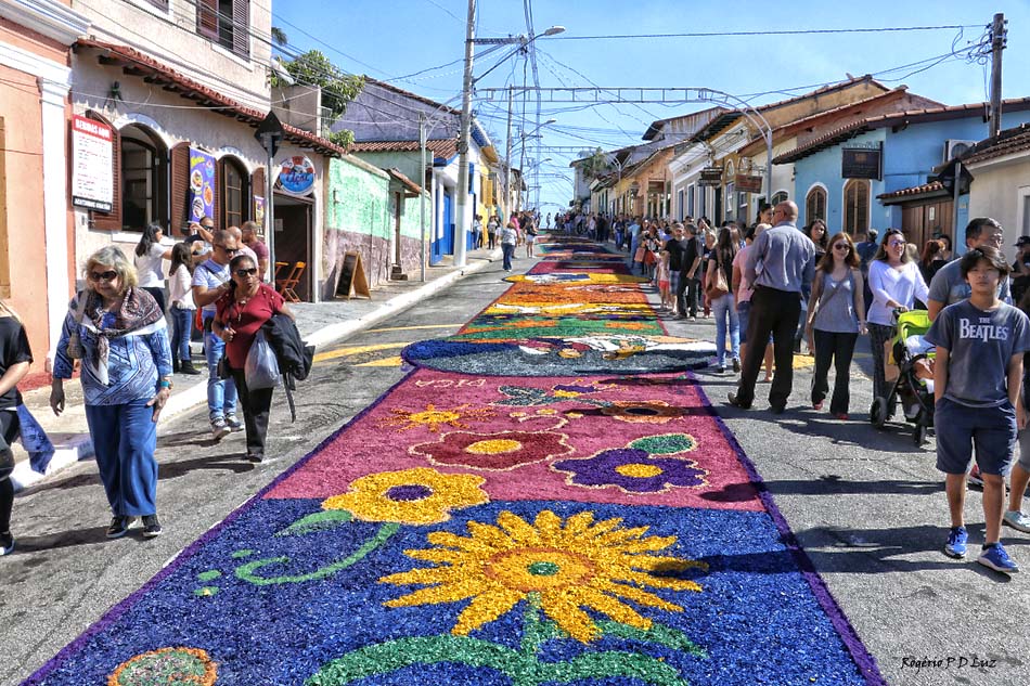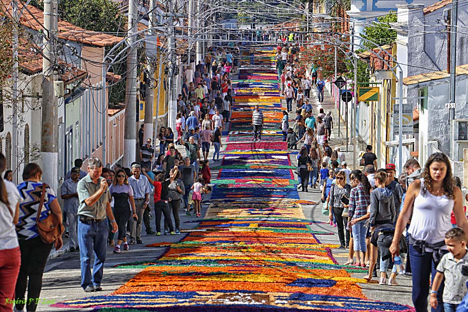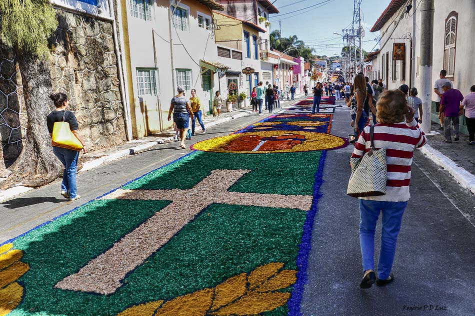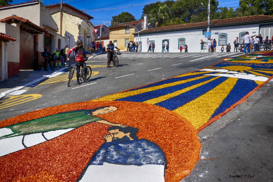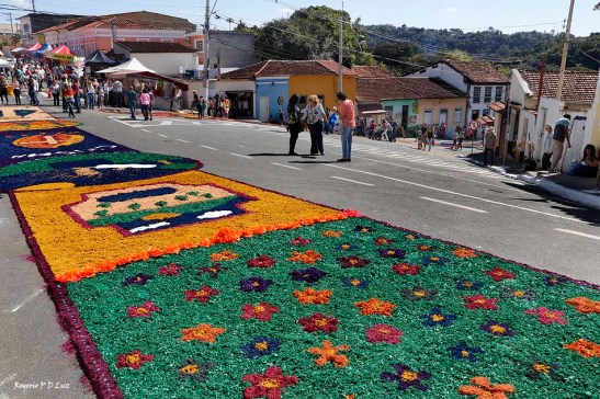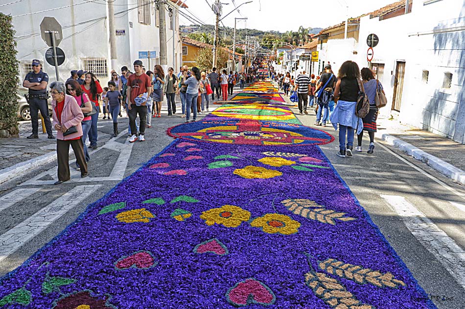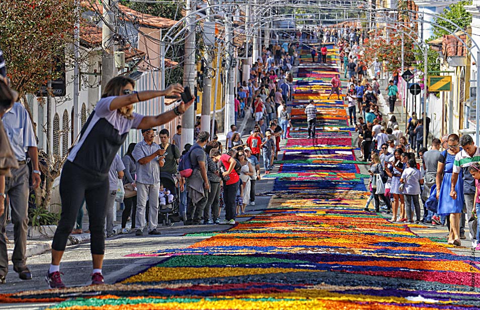 Em muitas cidades portuguesas e brasileiras, é costume ornamentar as ruas por onde passa a procissão com tapetes de colorido vivo e desenhos de inspiração religiosa. Esta festividade de longa data se constitui uma tradição no Brasil, principalmente nas “cidades históricas”, que se revestem de práticas antigas e tradicionais e que são embelezadas com decorações de acordo com costumes locais.