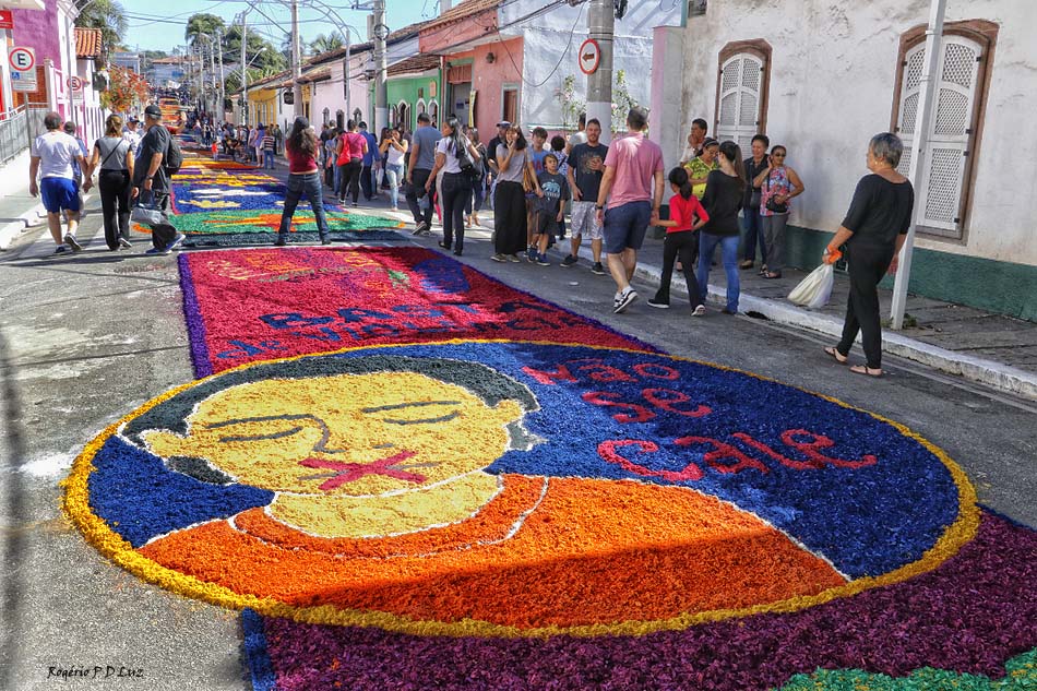 A celebração e festa de Corpus Christi em Santana de Parnaíba, “cidade histórica” do Estado de São Paulo, neste ano de 2018, em 31 de maio, completou 50 anos e teve como tema “A Fonte da Vida para o Leigo em Missão”. Tapetes coloridos feitos de serragem, pós de café, casca de ovo, e até de cal, algodão, pipoca, tampinha de garrafa decoravam as ruas do Centro Histórico no trajeto da procissão realizada no final da tarde.