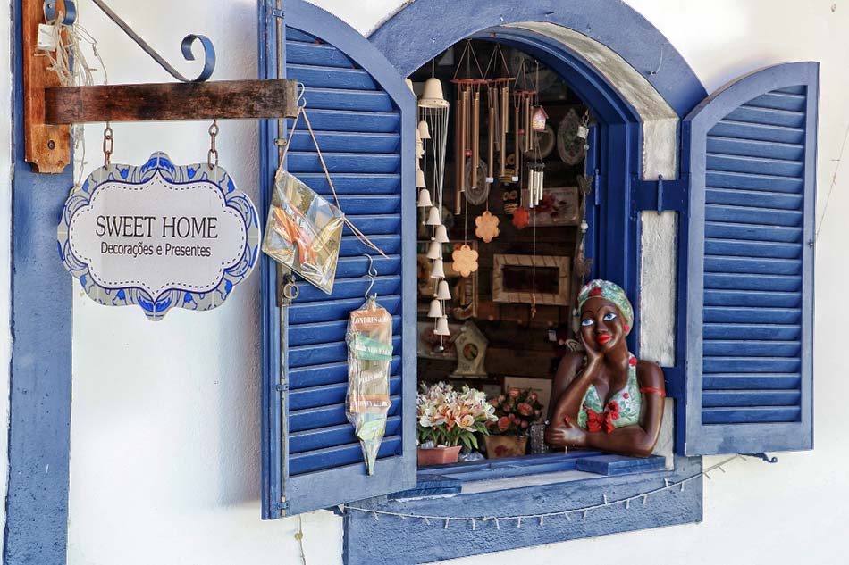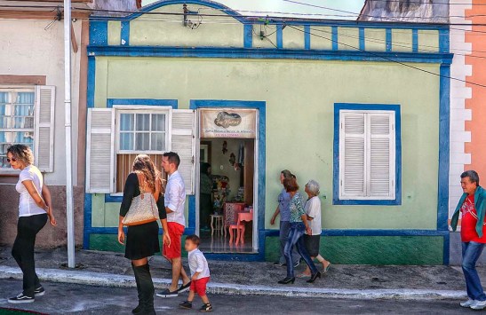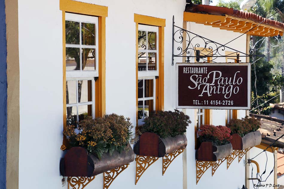 Outras das 209 edificações tombadas e preservadas, o comércio e restaurantes