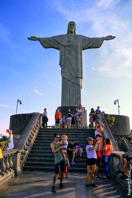 Assim no primeiro “meio dia”, deu tempo suficiente para ir visitar Corcovado e matar as saudades da estátua do Cristo Redentor que já lá não ia desde os anos 70. No site oficial, vi que o ponto turístico agora está sendo explorado pela mesma empresa particular que administra as Cataratas de Foz de Iguaçu. Assim em dois pontos da cidade, um em Copacabana, onde estávamos hospedados, e outro em Catete, perto da Praia do Flamengo, saem vans que te deixam no destino final, tendo apenas que trocar de carro no Centro de Visitantes por outro que sobe exclusivamente o sinuoso traçado até a estátua. Com isso, na Praça Lido, frente à praia, próximo ao icônico Hotel Copacabana, embarcamos, sem filas e pouca gente no período da tarde recomendado por menor afluência de visitantes, lá pelas 13:00 horas (era 2ª feira) , e em pouco mais de uma hora já estava frente ao Cristo que com emoção matava aquelas saudades que perduraram mais de 40 anos, pode?