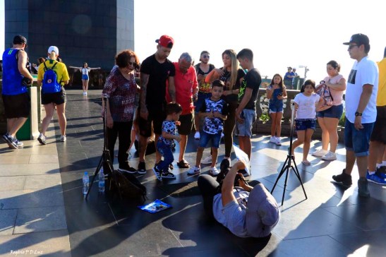 A fotógrafa profissional tira fotos de turistas com a estátua de Cristo como fundo, o dia inteiro nesse deita e levanta