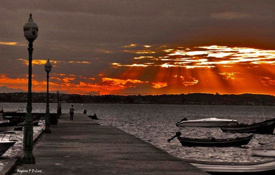 A plataforma do Porto da Barra acaba sendo uma referência, um primeiro plano, para fotografia do pôr do sol. Os barcos ajudaram bem na composição das fotos.