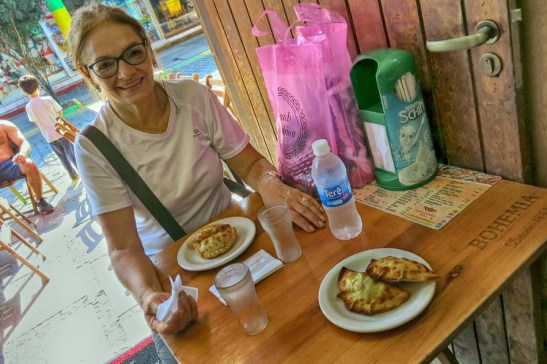 Na rua paralela você pode experimentar umas boas empadas/empanadas argentinas. Os argentinos são quase 10% da população fixa da cidade. Ouve-se castelhano por todos os lugares com grande concentração nesta zona comercial.