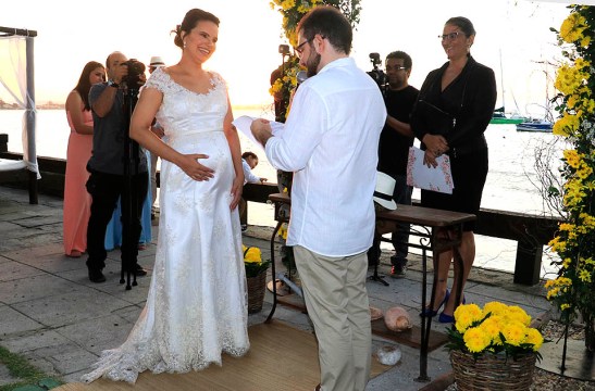 Mais da cerimônia que teve o charme da descontração. Nada de ternos e gravatas, nem calçados sociais, a informalidade, até a noiva ousou entrar descalça. Um ambiente com rica decoração mas despojada de alto luxo, tudo apropriado para um casamento numa casa de festa na beira de uma praia. Muito lindo! As fotos falam por si. Parabéns aos noivos Luíz Gustavo e Sol. Muitas felicidades.