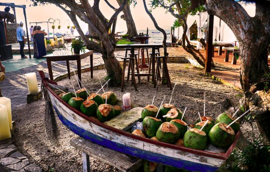 A praia tem boa oferta de restaurantes e bares. A época era a Copa do Mundo de 2018 e muita gente se aglomerou num dos bares para assistir a um dos jogos das oitavas de final e lá ficamos por um tempo tomando água de coco.