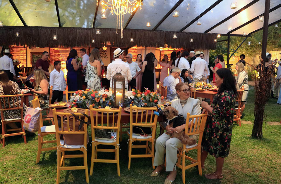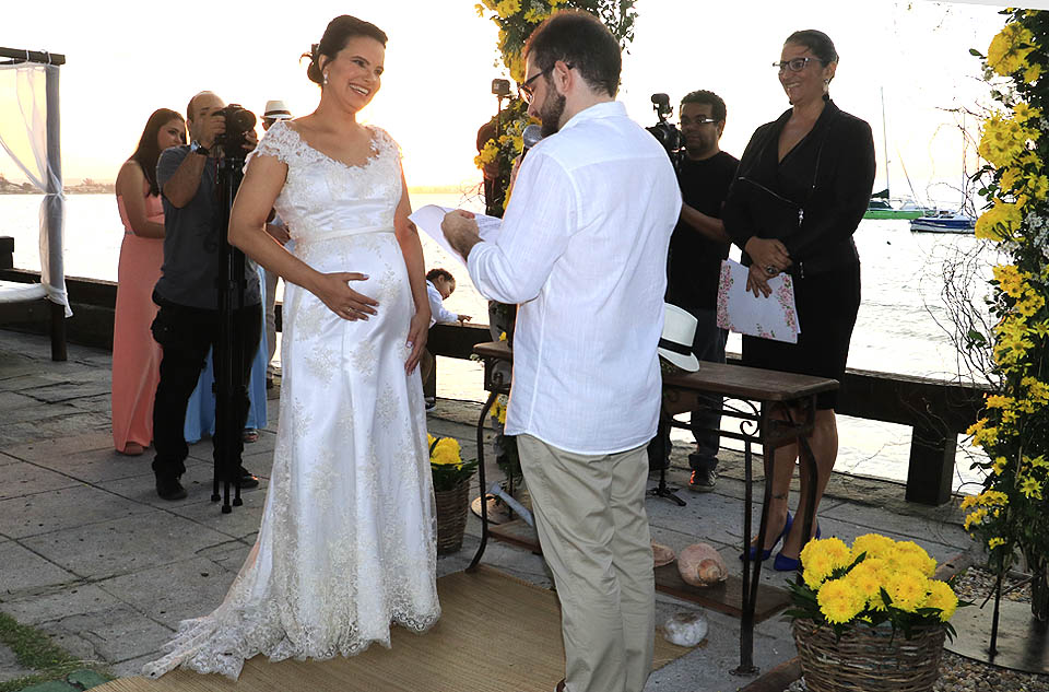 Mais da cerimônia que teve o charme da descontração. Nada de ternos e gravatas, nem calçados sociais, a informalidade, até a noiva ousou entrar descalça. Um ambiente com rica decoração mas despojada de alto luxo, tudo apropriado para um casamento numa casa de festa na beira de uma praia. Muito lindo! As fotos falam por si. Parabéns aos noivos Luíz Gustavo e Sol. Muitas felicidades.