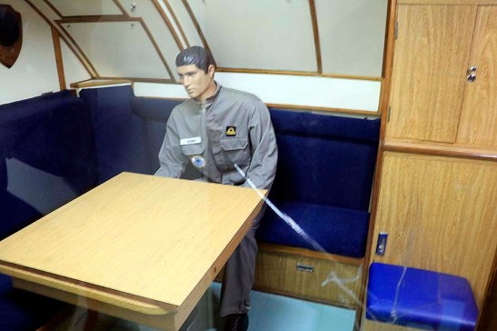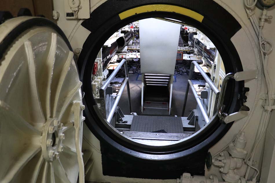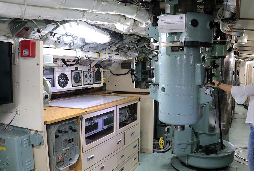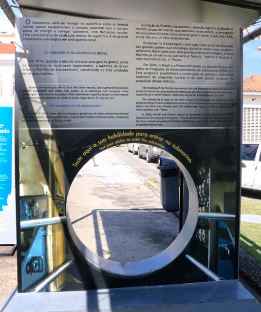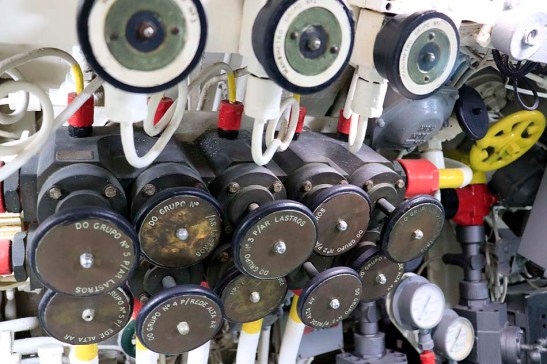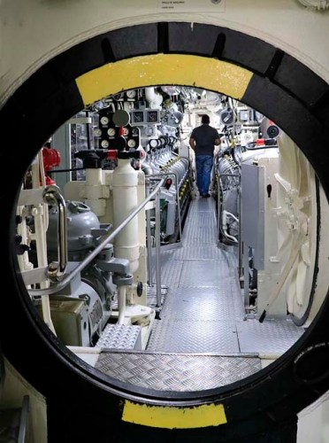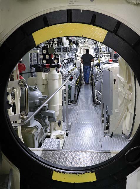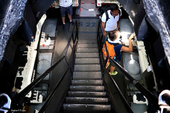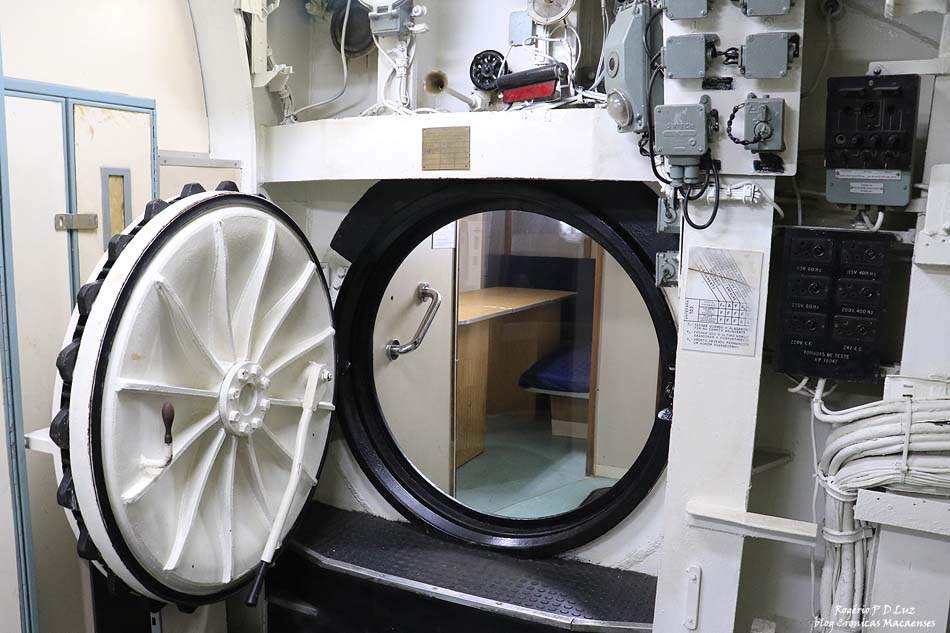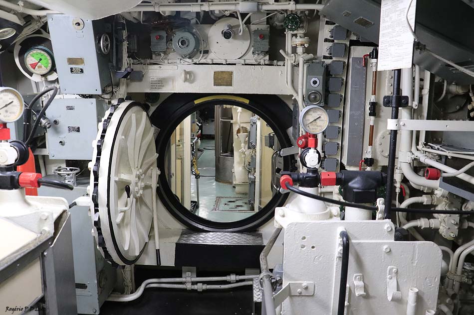 O editor: No final do passeio, já no último ambiente, saí rapidamente do submarino pois deu claustrofobia, ou seja, os ambientes apertados, pouco espaço, corredores estreitos e a passagem por várias escotilhas já incomodava e dava aquela sensação de desespero. No entanto vi várias pessoas que andavam tranquilas. Talvez tenha demorado um pouco mais com várias paradas para fotografar. Talvez o ideal seja um passeio rápido. Se quer visitar, e se puder, pois é uma visita imperdível para quem aprecia embarcações de combate e se interessa por conflitos armados ou guerras, como eu, ou por mera curiosidade. No entanto, acabei indo sozinho.