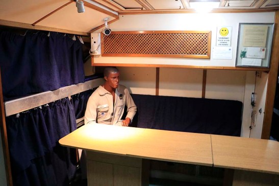 “Atenção: Espaço confinado. Não recomendado para pessoas cardíacas, com dificuldades de locomoção, claustrofóbicas ou gestantes. Em caso de mau tempo o submarino será fechado à visitação”.