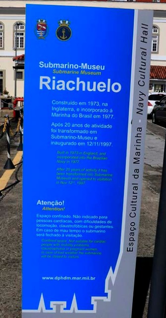 O Submarino-Museu Riachuelo (S-22) de fabricação inglesa e da classe Oberon, foi incorporado à Marinha do Brasil em 1977 e serviu por 20 anos, sendo desativado em novembro de 1997.