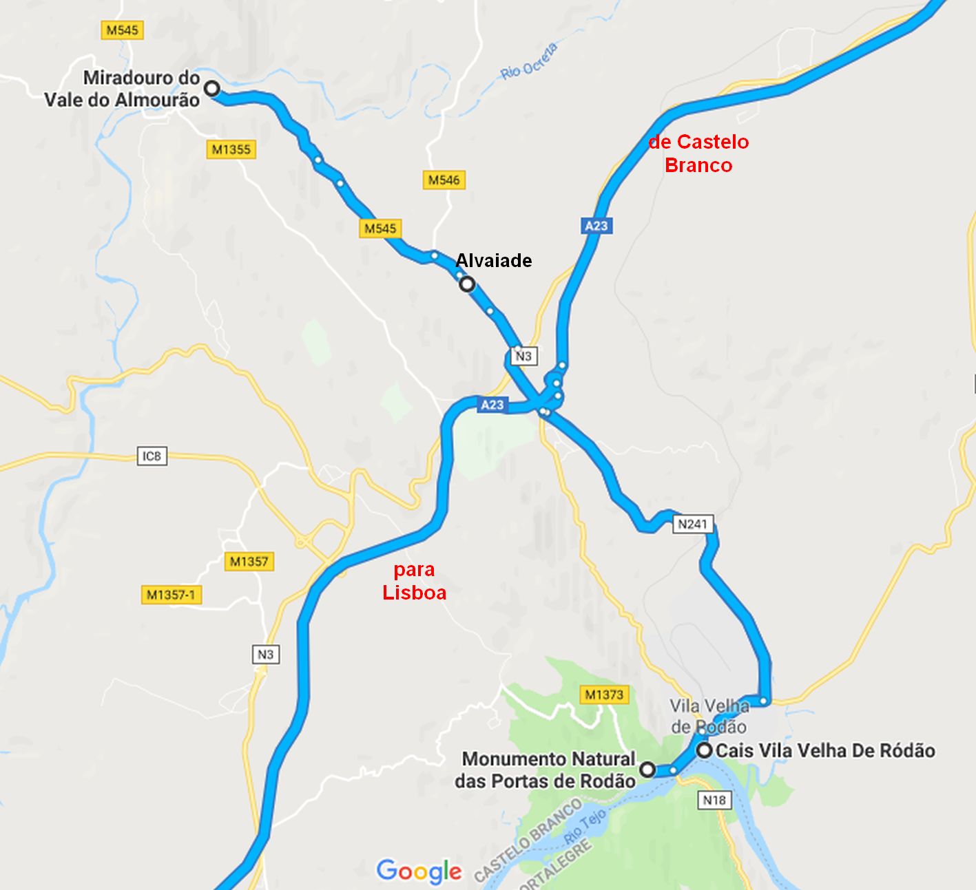 3.1 As Portas do Ródão no Rio Tejo, mapa do Google
