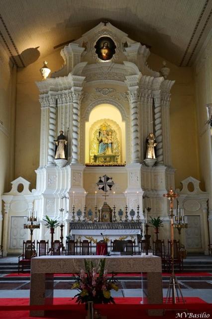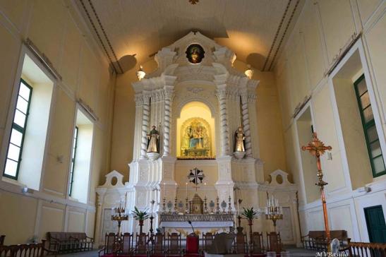 No centro do altar-mor, está a imagem de Nossa Senhora do Rosário, ladeada, do lado esquerdo, pela imagem de São Domingos, o fundador dos dominicanos, e do lado direito, pela imagem de Santa Catarina de Sena, uma das padroeiras da Diocese de Macau
