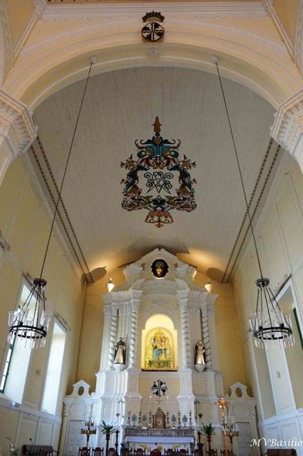 Num nível mais abaixo, vê-se a Cruz da Ordem de São Domingos e, no topo, está uma imagem do Sagrado Coração de Jesus. No tecto, está pintado um emblema da Irmandade de Nossa Senhora do Rosário.