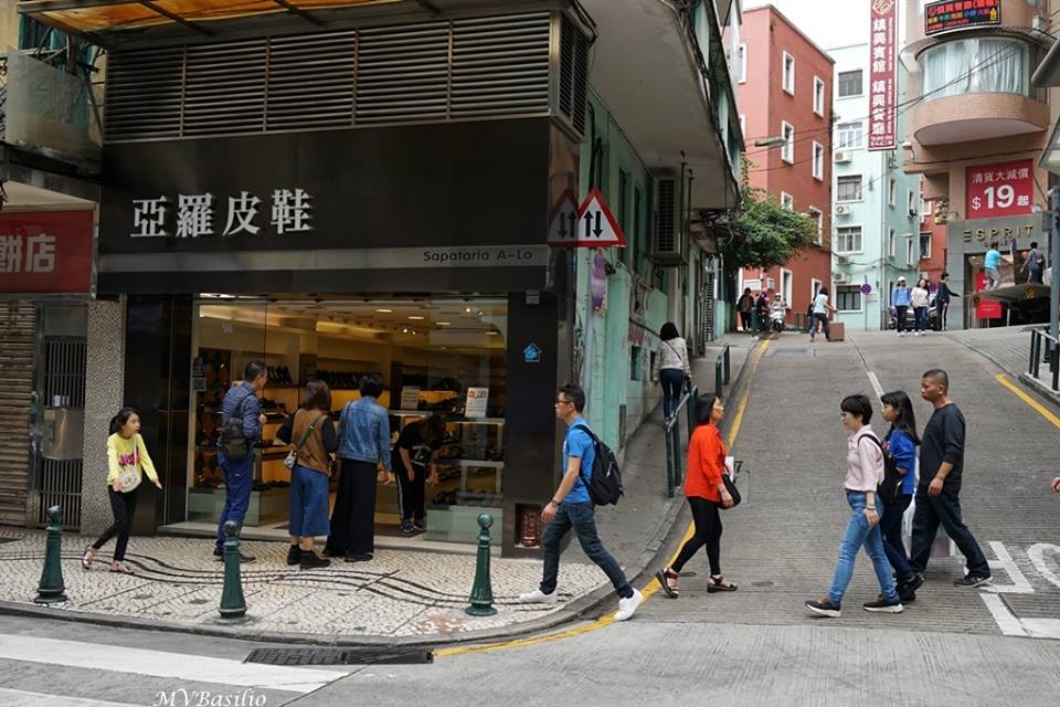 Sapataria A-Lo, a mais antiga loja ainda em actividade desde o século passado. A rampa do lado direito é a Calçada das Verdades, por onde se pode ir até à Fortaleza do Monte.