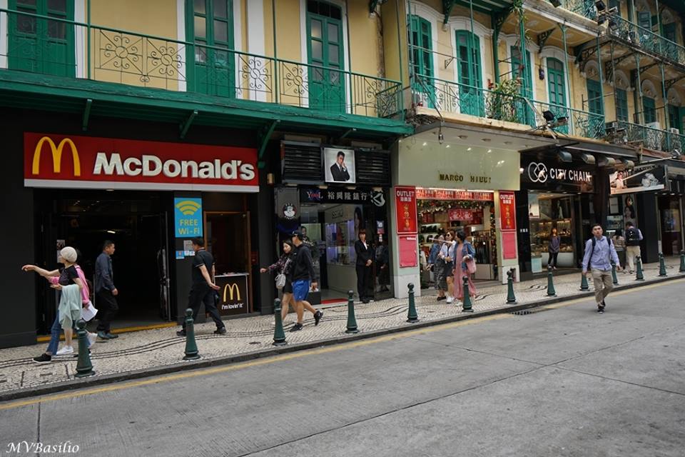 Alfaiataria WENG WA ( 永華洋服 ) e, depois, Sopa de Fitas MAK KAO KEI (麥九記麫家) ; Café CHIP SENG (捷成咖啡公司) ; BARBEARIA SANITÁRIA PORTUGUESA ( 美斯髮型屋 ) ; FARMÁCIA UNIVERSAL ( 環球大藥房) ; Livraria LAP SON (立信書局) ; Artigos Eléctricos POU WA (寶華電業器材) .