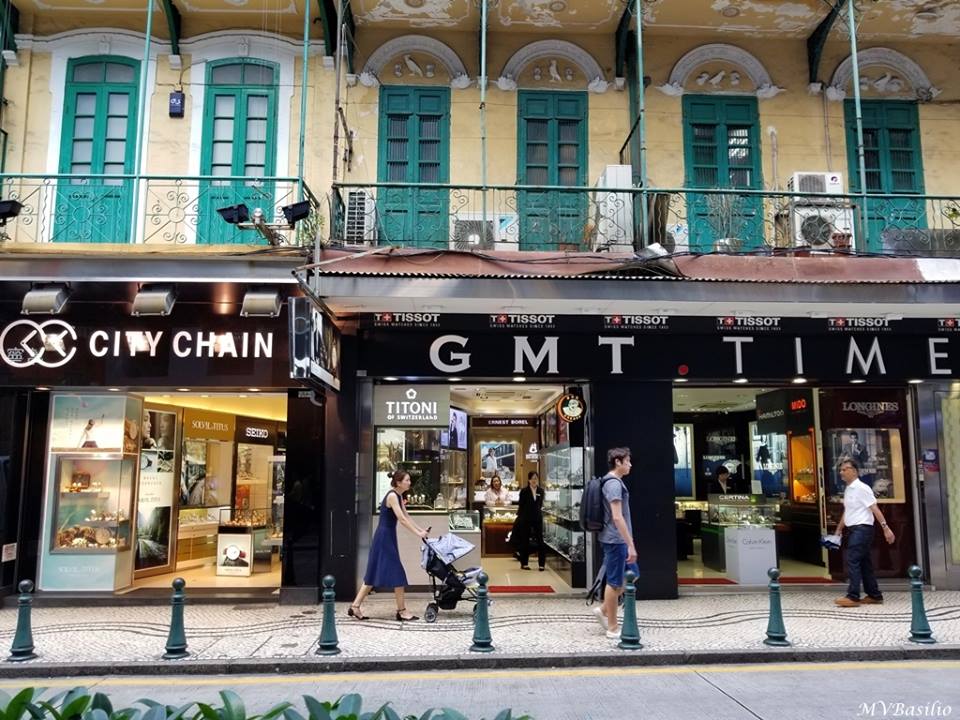 Café T’ÁN TOU (檀島咖啡) ; LAU FÓ KEI (劉科記) ; Quinquilharia TIN SAN (天生百貨) ; Quinquilharia TUNG FONG (Mariazinha) (東方百貨公司) ; Farmácia Chinesa LUEN ON (聯安中藥房) ; Sapataria TAI KÓNG (大光皮鞋); Loja de Frutas KAM KEI (錦記生果) ; Sopa de Fitas NGAN HEI (銀禧麫家) ; MAY MAY KONG SI (美美公司) ; Padaria MAXIM (美心餅店) ; Sapataria A-LÓ (亞羅皮鞋) .