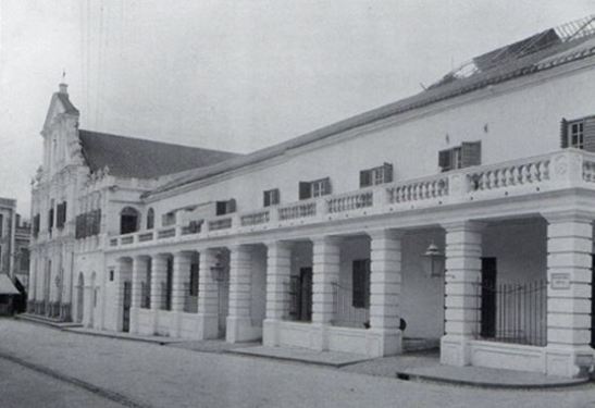 Aspecto do antigo Convento dos Dominicanos de Nossa Senhora do Rosário, anexo à Igreja de S. Domingos. O edifício do Convento foi expropriado pelo governo depois da expulsão das ordens religiosas no ultramar português, em 1834, tendo subsequentemente servido para instalações de diversos serviços, o último dos quais foi a Inspecção de Incêndios e Telefones, até 1918 e, depois de desocupado, foi demolido por ameaçar ruína (foto baixada do blogue nenotavaiconta).