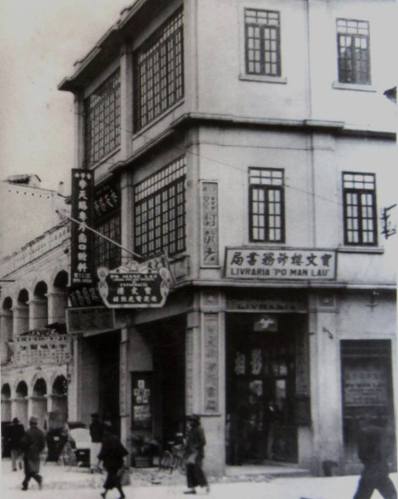 Edifício nº 2 do Largo de S. Domingos, onde esteve instalada a Livraria Po Man Lau (寶文樓印務書局 , cujos caracteres, em chinês, representam Pou Man Lau Tipografia e Livraria, embora dedicasse também a outras actividades, designadamente, fotografia e papelaria), era um estabelecimento comercial muito activo e popular, principalmente durante os anos 50 do século passado. Mudou-se depois para o Largo do Senado, nºs 13-15, onde funcionou até ao seu encerramento.