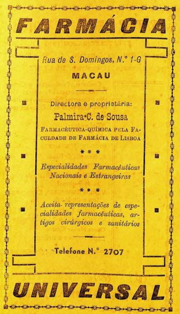 Alfaiataria HANG IAU (恆友洋服) ; Tabacaria LÓK KEI (樂記行) ; Relojoaria MENG KEI (明記鐘錶店) ; COLÉGIO CHUNG WAH (中華英文書院 ), um estabelecimento de ensino de chinês e inglês, que ocupava o r/c e o 1º andar; Taxi NEW YORK (紐約的士) .