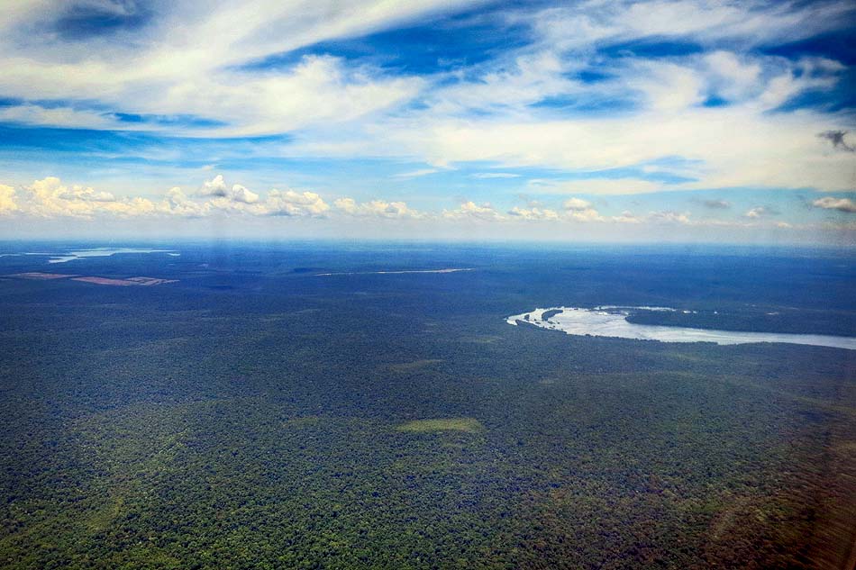 A impressionante queda de águas do Salto San Martin, que é o ponto final com mirante (canto superior direito) do circuito superior.