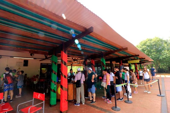Uma novidade que não existia na minha última visita em 2016, é de pegar uma senha com letra e número, que indica qual o seu embarque anunciado por alto-falantes (vide mais adiante). Sem nenhuma placa indicativa ou orientação, pela aglomeração de pessoas, ao indagar o motivo, soubemos do procedimento. Não saberia dizer se era devido ao grande número de visitantes, pois era domingo, ou algo definitivo. O local é esse da fila: