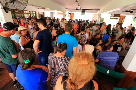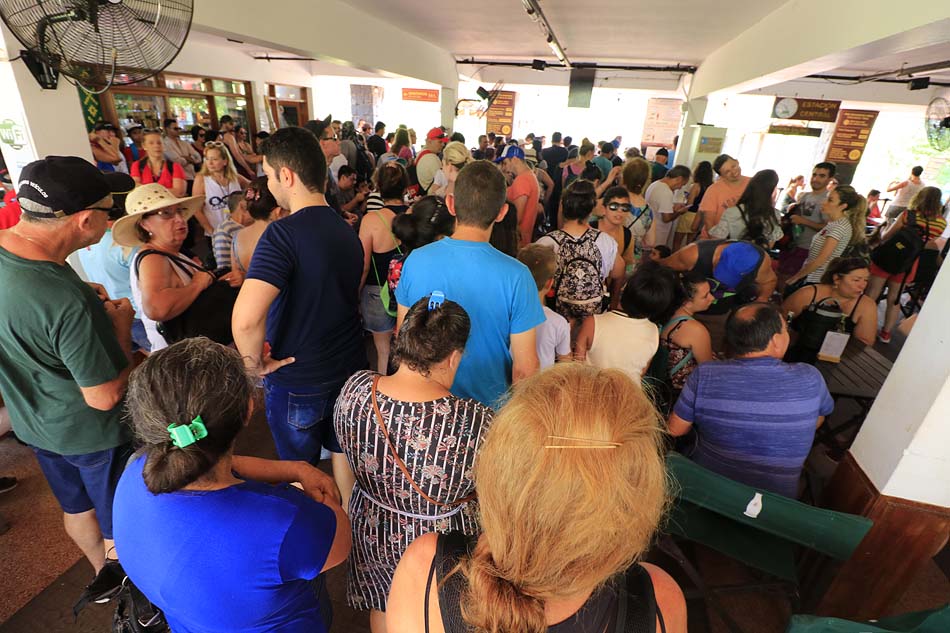Fila para pegar senha para embarque no trem. Cuidado que o atendente chega a sugerir para ir a pé, numa caminhada de hora debaixo de sol forte, é só recusar.
