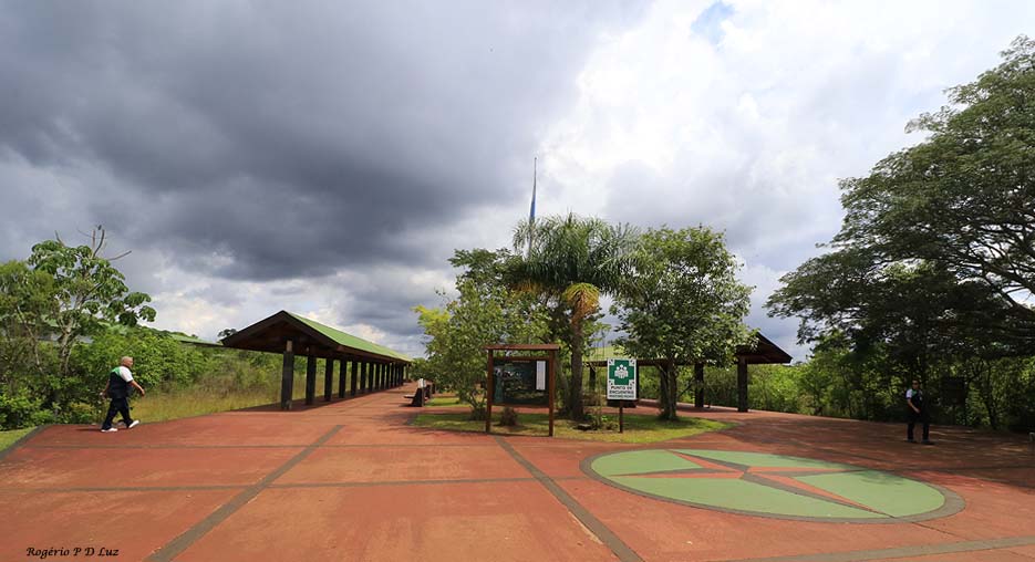 Uma vista do primeiro mirante do lado brasileiro que fica na área de desembarque dos ônibus e diante do hotel cor de rosa. Está no centro pouco superior. Na próxima foto um zoom do local.