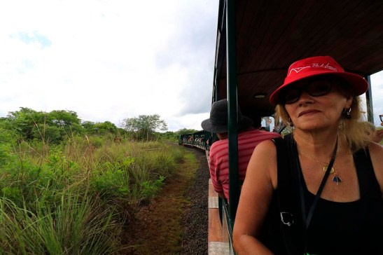 A caminho da 1ª parada para visita ao circuito superior ou inferior. Quem for passear na Garganta do Diabo, na 2ª parada, não precisa sair do trem,
