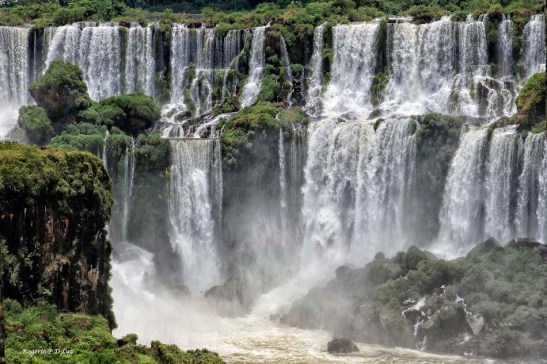 Uma vista mais aproximada. O mirante mais à esquerda é do Brasil. Veja na próxima foto como é este complexo de cataratas do lado brasileiro.