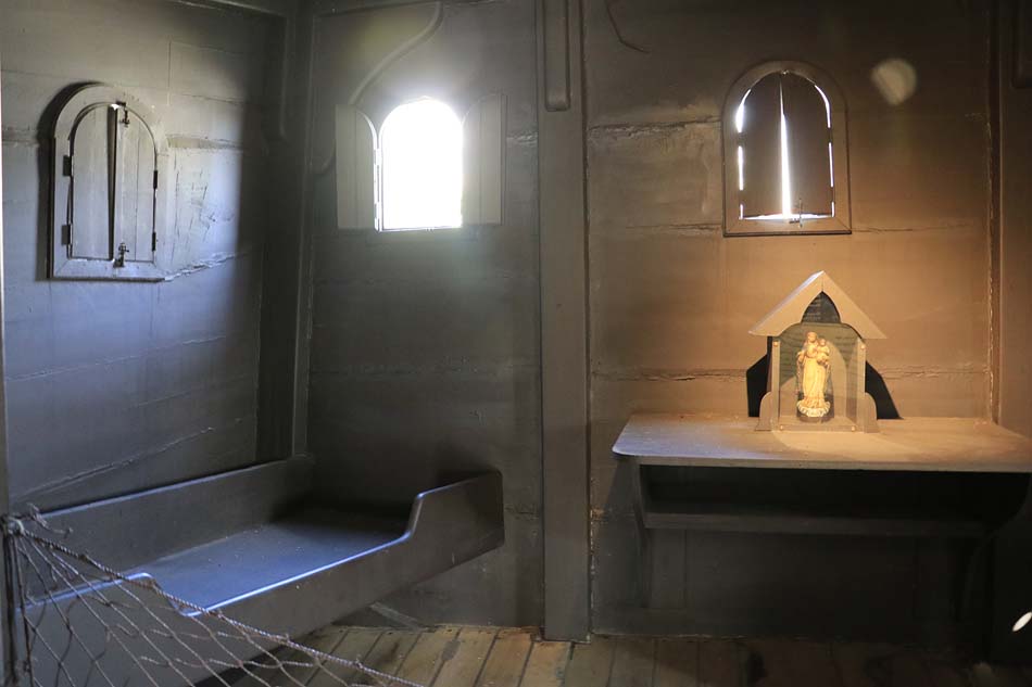 Abaixo (clique nas fotos para aumentar): à esquerda> máquina de carregar, que é um equipamento para adestrar marinheiros no manuseio de carregar e descarregar o canhão 76,2mm acima. À direita> planta do contratorpedeiro