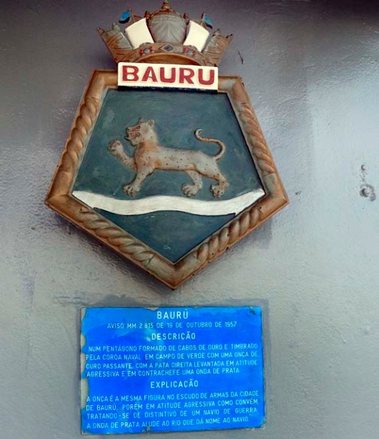 (Wikipédia) O navio-museu Bauru, um contratorpedeiro de escolta, foi construído durante a Segunda Guerra Mundial em Nova Jersey, nos Estados Unidos da América e lançado ao mar em 15 de setembro de 1943, e incorporado à US Navy em 11 de outubro do mesmo ano com o nome de “USS McAnn (DE-179)”. Foi transferido para a Marinha do Brasil após descomissionado nos EUA em 1944. O seu nome é uma homenagem à cidade paulista de Bauru.