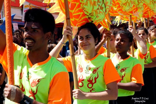 O grupo abaixo iniciou o desfile na Rua dos Estudantes, ao lado da praça, e inovou na apresentação da dança. Foram de encontro com os grupos que desfilavam pela Rua Galvão Bueno.