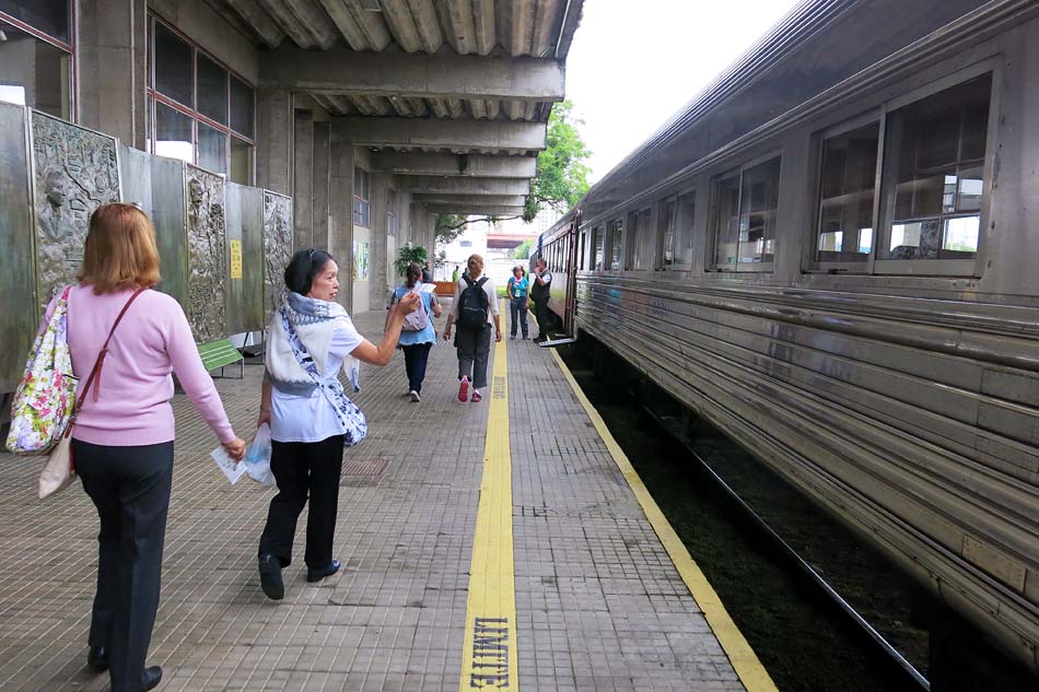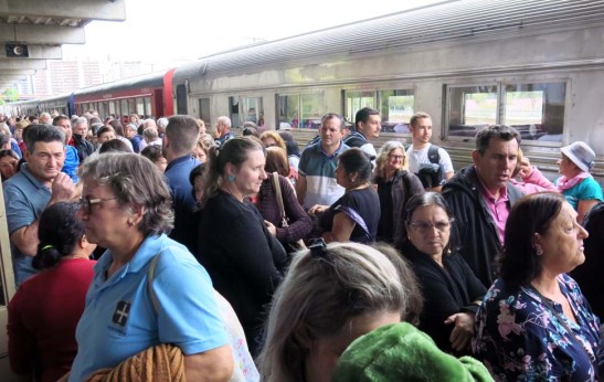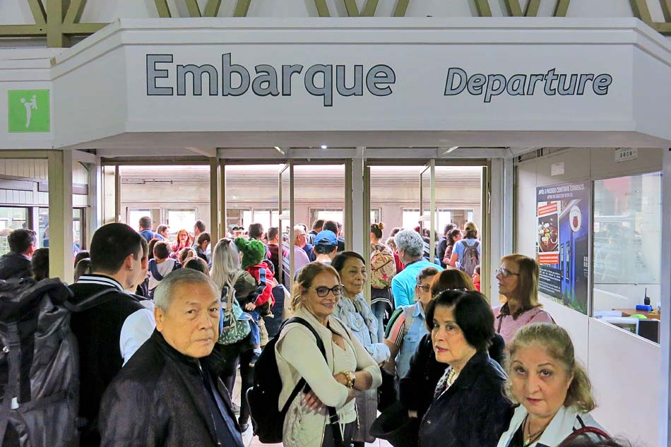 Havia muito acúmulo de gente, num espaço não tão grande à espera da chegada e embarque no trem, mas logo que isso ocorreu, a multidão dispersou-se dando a impressão que não chegou a lotar os inúmeros vagões, que cabem 1.100 passageiros. Na partida das 08:30 horas somente trafegam trens turísticos ou comuns. Os vagões de luxo partem uma hora depois, isto é, se houver partida pois no dia da nossa viagem, por motivos alheios ao meu conhecimento, não houve a viagem.