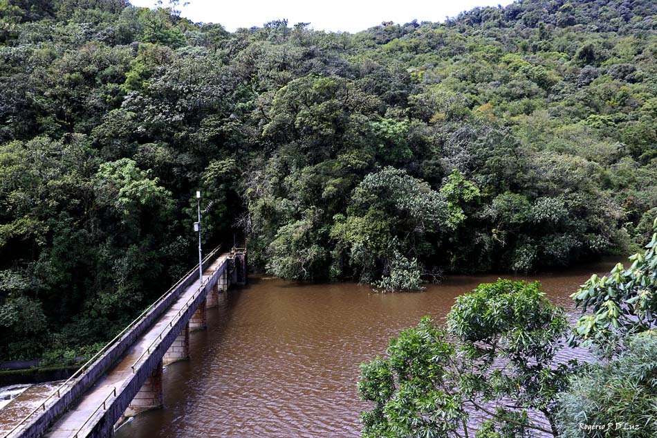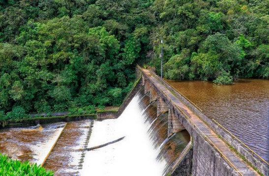 Uma vista para quem senta do lado direito é a Barragem do Reservatório Marumbi, formado por uma barragem no Rio Ipiranga e alimenta a Usina Hidrelétrica Marumbi.