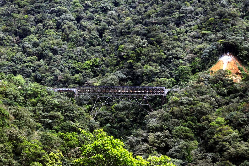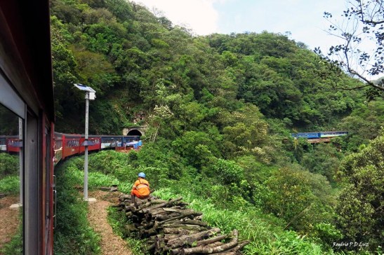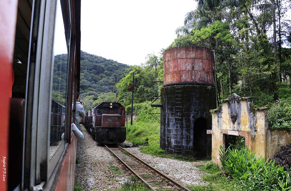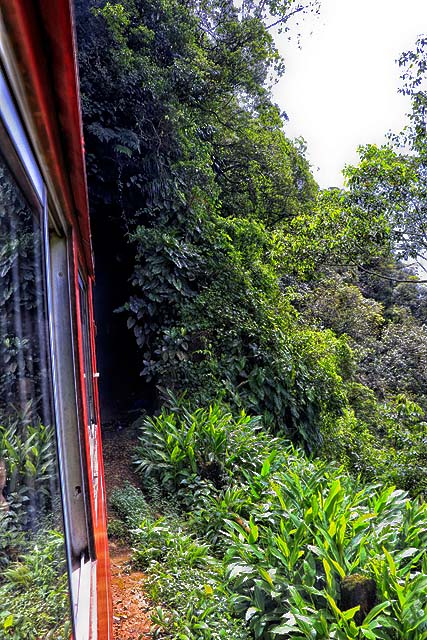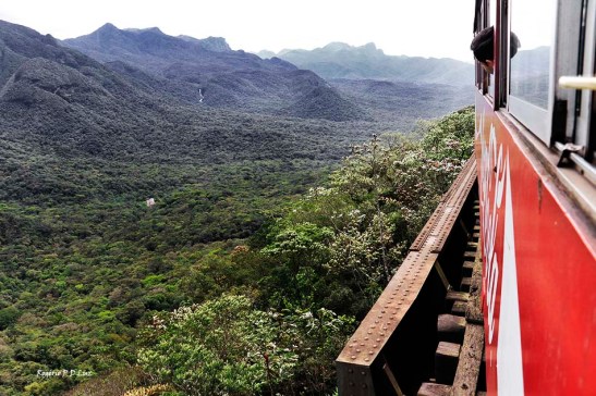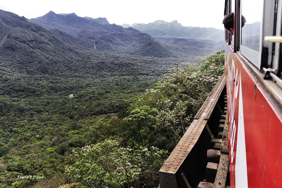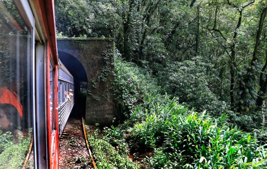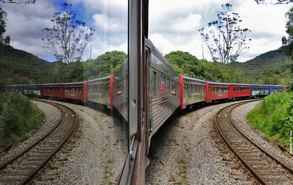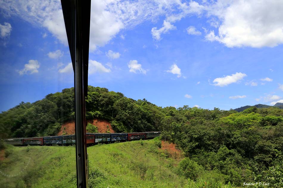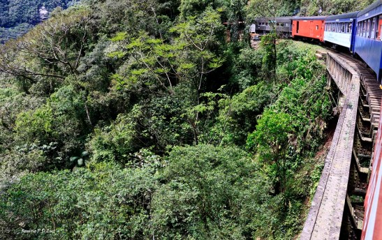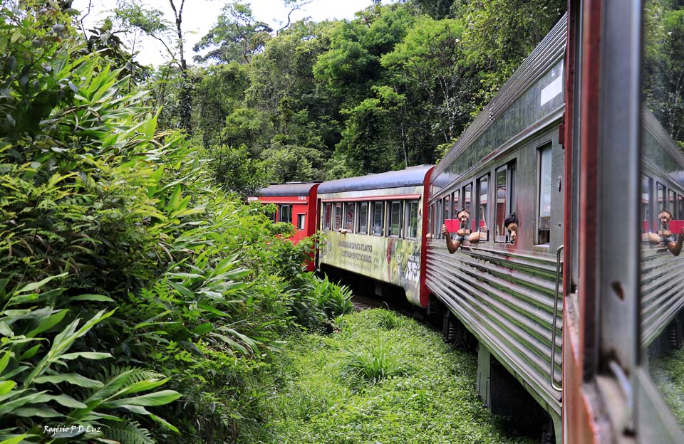 A vista das belezas naturais se sucedem a cada curva a contemplar a Serra do Mar Paranaense e a área contínua da Mata Atlântica que está preservada hoje e que seja para sempre. Na foto acima, no centro do lado direito, onde a mata é menos densa, pode-se ver um túnel da ferrovia.