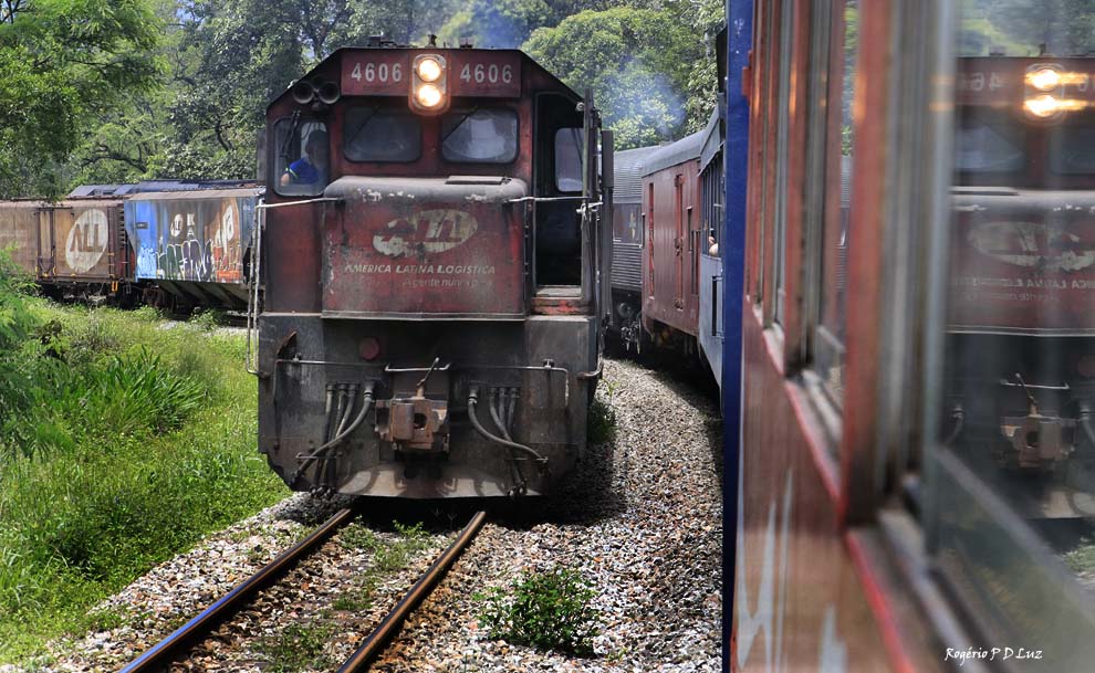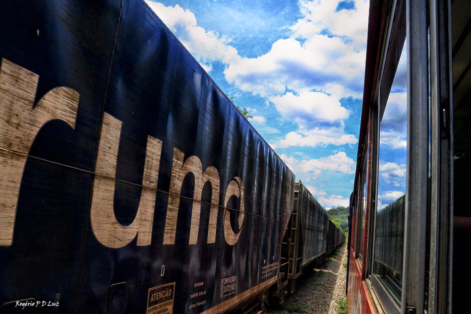 O trem turístico cruza com uma locomotiva de carga provavelmente vindo do Porto de Paranaguá que é o maior porto graneleiro da América Latina e também o 3º maior porto de contêineres do Brasil, perdendo só para Itajaí e Santos. É o maior porto do Brasil em exportação de grãos. Exporta e importa grãos, fertilizantes, contêineres, líquidos, automóveis, madeira, papel, sal, açúcar, entre outros. A maioria dos navios oriundos de outros países são provenientes dos Estados Unidos, China, Japão e Coreia do Sul. (Wikipédia)