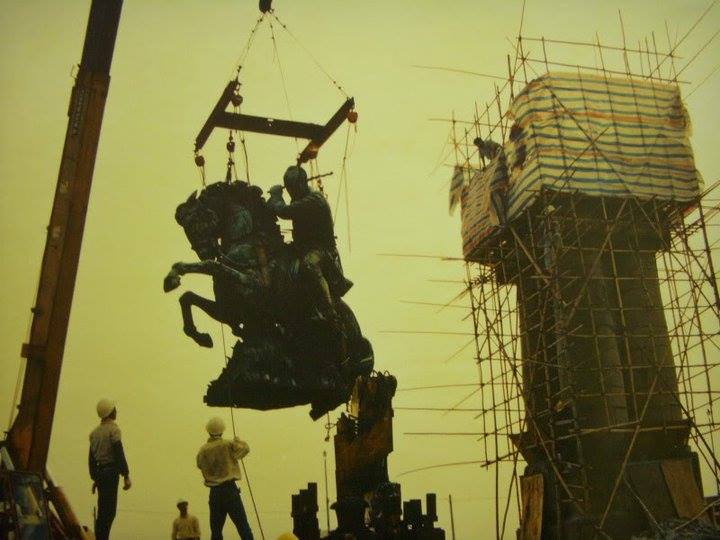 Momento da retirada da estátua esquestre de Ferreira do Amaral
