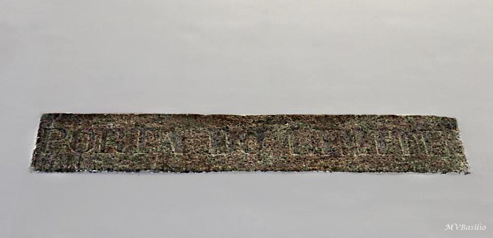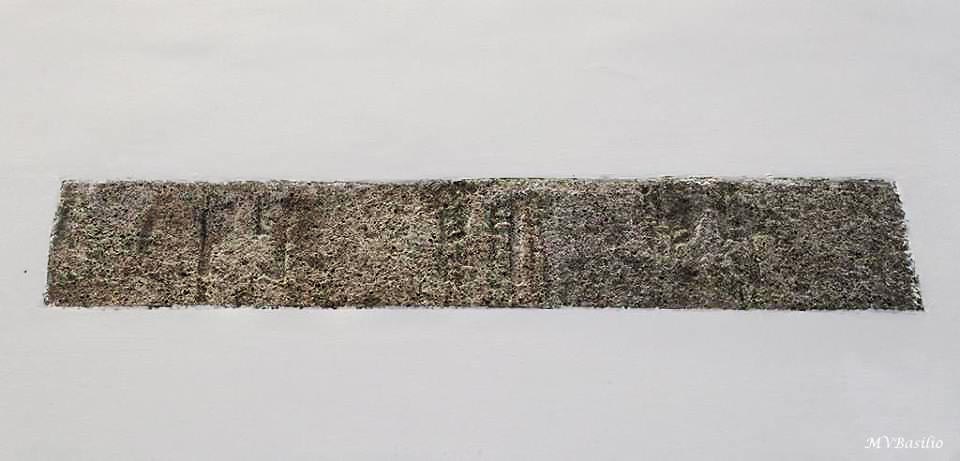 Embora pouco visível, está inscrita nesta pedra PORTA DO LIMITE, a qual Ferreira do Amaral mandou colocar no antigo pórtico, localizado no istmo. Foto Manuel V.Basílio