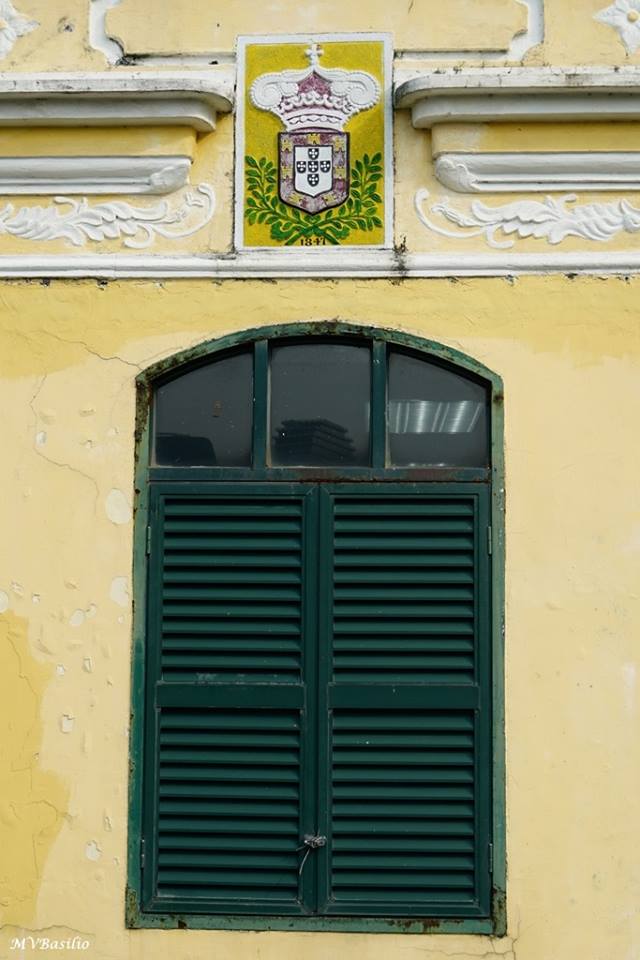 Interior do Forte da Taipa. Ao fundo, por cima da janela, está ainda visível o brasão de armas da monarquia portuguesa. Foto Manuel V.Basílio