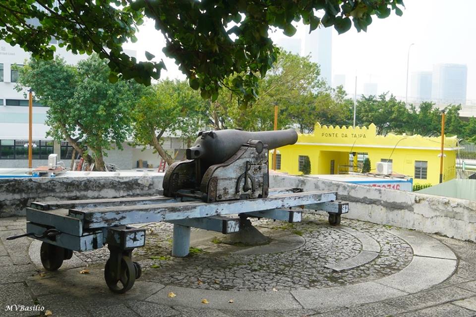 Um canhão, fundido em Boston, com a data de 1855, no Forte da Taipa. Foto Manuel V.Basílio