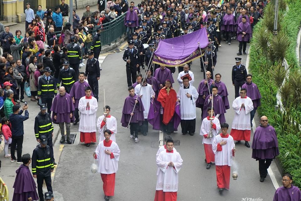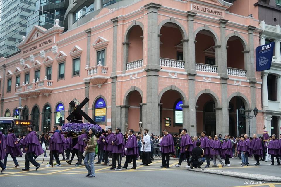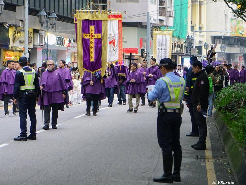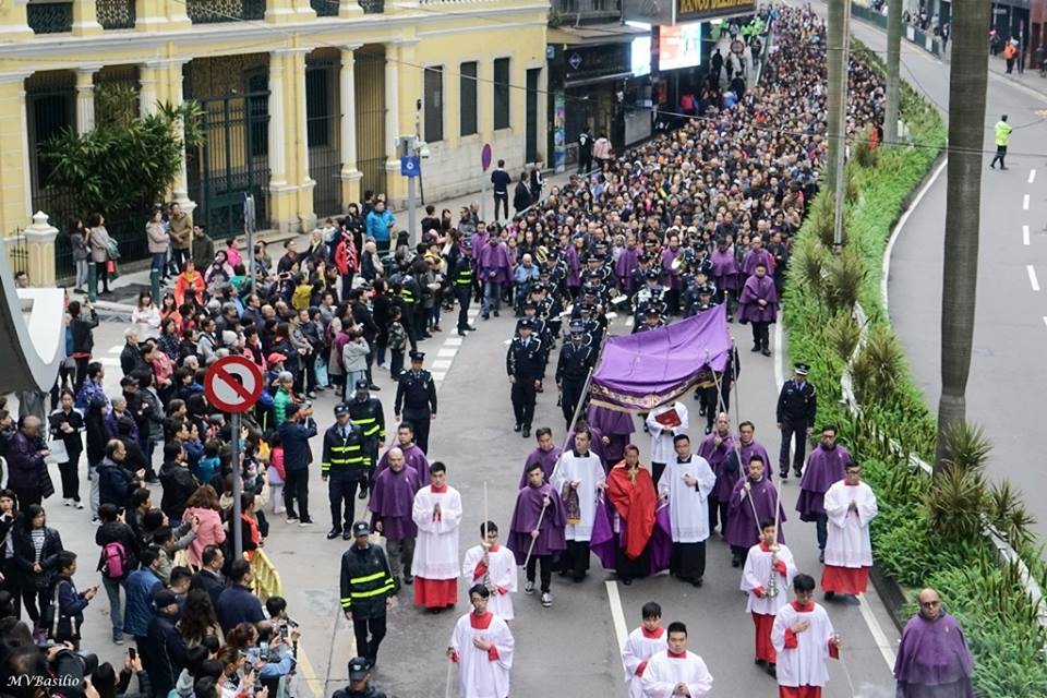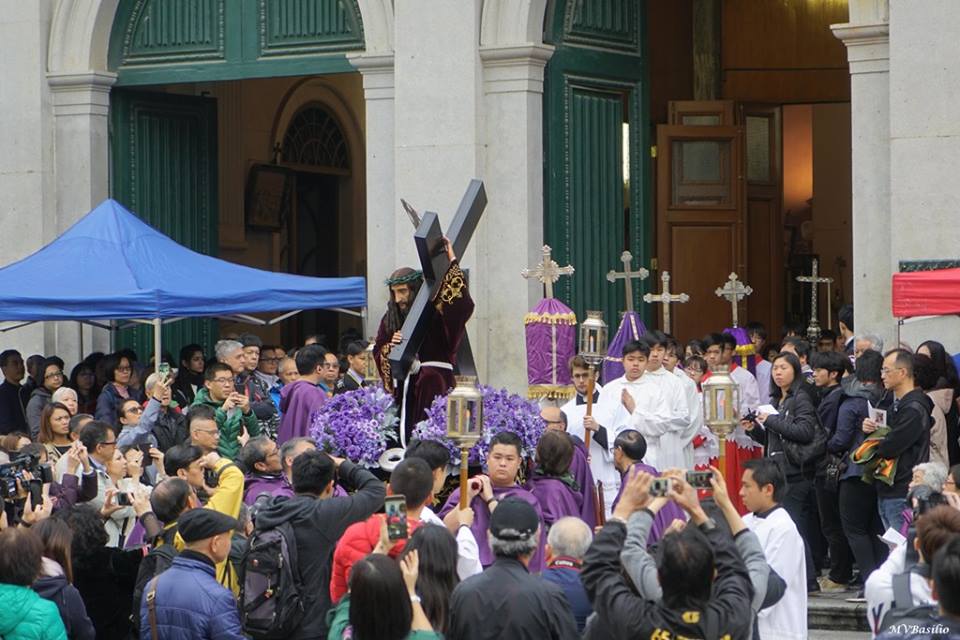 Mais um ano, em 2019, e novamente a procissão de Nosso Senhor dos Passos é realizada! A expectativa que esta tradição continue por longos anos. O comentário deste editor, um macaense residente no exterior há muito tempo, que se repete anualmente com postagens da procissão, é de satisfação pelo cumprimento do acordo que criou a Região Administrativa Especial de Macau-RAEM em 1999, no aspecto da liberdade religiosa, num território hoje pertencente à China, após a devolução pelos portugueses, que tem suas próprias leis sobre práticas religiosas e esta manifestação há que se ver se seria autorizada no continente. Soma-se a isto, a participação da gloriosa P.S.P. Polícia de Segurança Pública, de novo, com a sua banda a prestigiar a procissão. Bem haja todas as pessoas de boa vontade e que respeitam o ‘statu quo’ de Macau como uma região especial da China. Vejamos a seguir, texto descritivo de como ocorreu a procissão com fotos de colaboradores nomeados, pelo que se agradece (Rogério P D Luz).