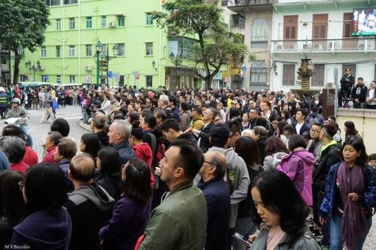 O público de fiéis, curiosos locais e turistas especialmente aqueles vindos do continente da China, uma grande novidade para eles. Foto: Manuel V. Basílio