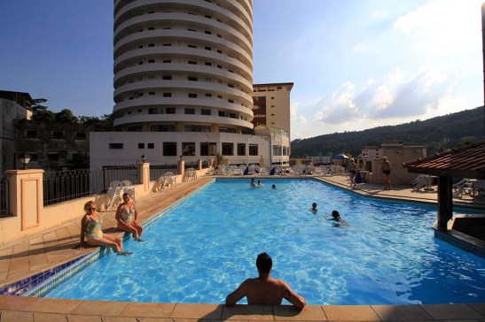 Instalamo-nos no Hotel Guarany, um bom hotel que fica diante da Praça Ademar de Barros, a principal da cidade. O estabelecimento surpreendeu com uma boa taxa de ocupação, que atraiu pelo custo-benefício em promoção pelo site Peixe Urbano devido à baixa temporada. O que aliás se explica a quantidade de hóspedes todos os dias, mesmo na 2ª feira, oferecendo pensão completa com uma comida variada, gostosa e de boa qualidade, além do bom atendimento dos empregados do restaurante.