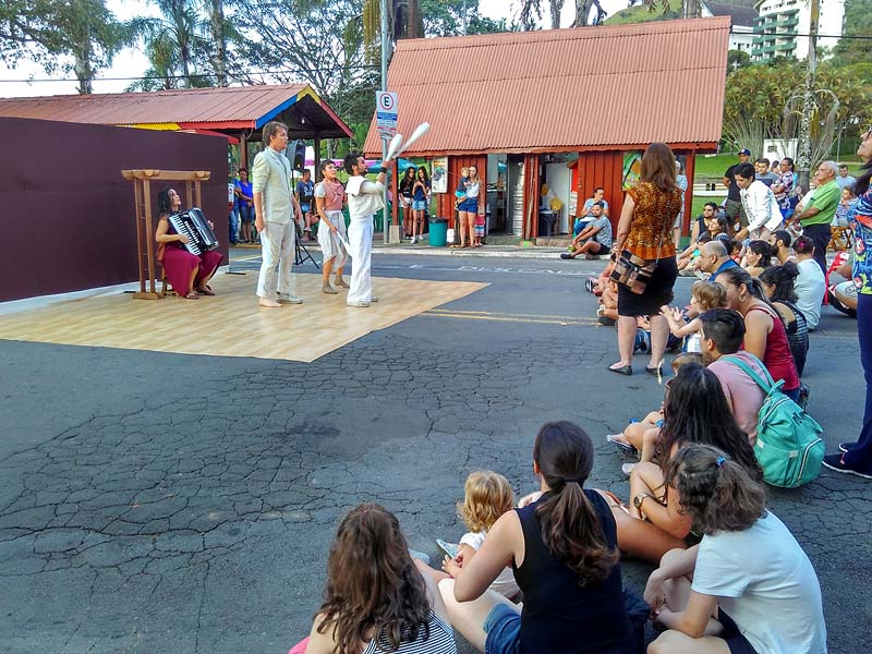 Após nos instalarmos no nosso confortável quarto, fomos passear na praça, que por ser domingo, tinha entretenimento, barracas abertas e bom público. Um ambiente relaxante para jogar conversa fora.