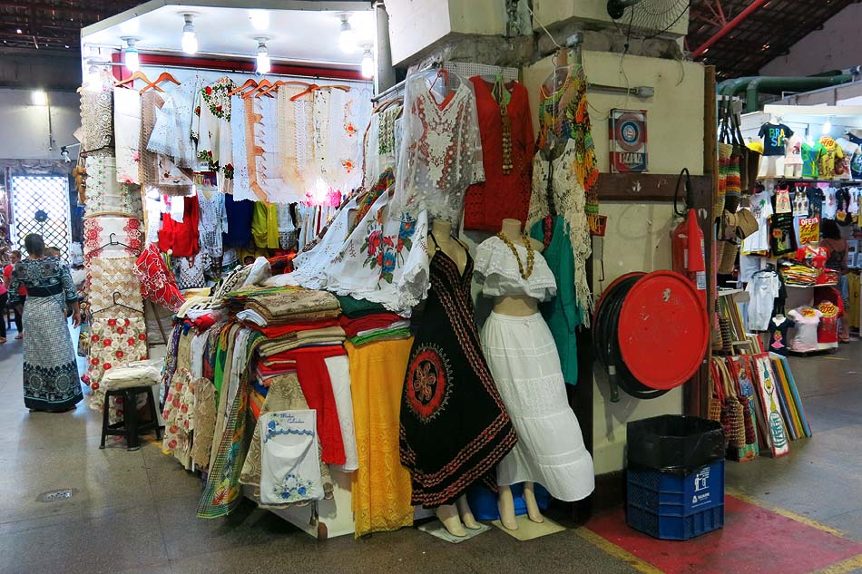 O comércio do Mercado Modelo, de lembranças da Bahia, rendas, berimbaus e artesanato produzido no estado