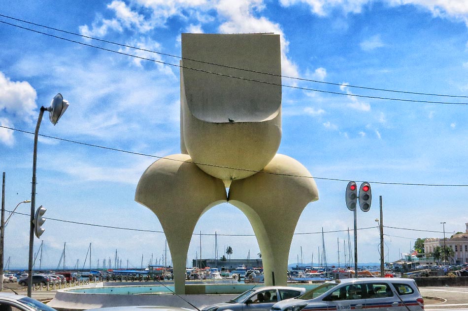 O nome oficial da escultura é “Fonte da Rampa do Mercado” (1970) ou Monumento à Cidade do Salvador. O artista Mario Cravo criou essa obra de arte que está localizada na Praça Cairu, Cidade Baixa, Salvador (BA), entre o Mercado Modelo, o Elevador Lacerda e a Igreja de Nossa Senhora da Conceição da Praia. Foi encomendada pelo então Prefeito de Salvador, Antônio Carlos Magalhães. Em fibra de vidro e estrutura metálica. Mede 16 metros de altura.